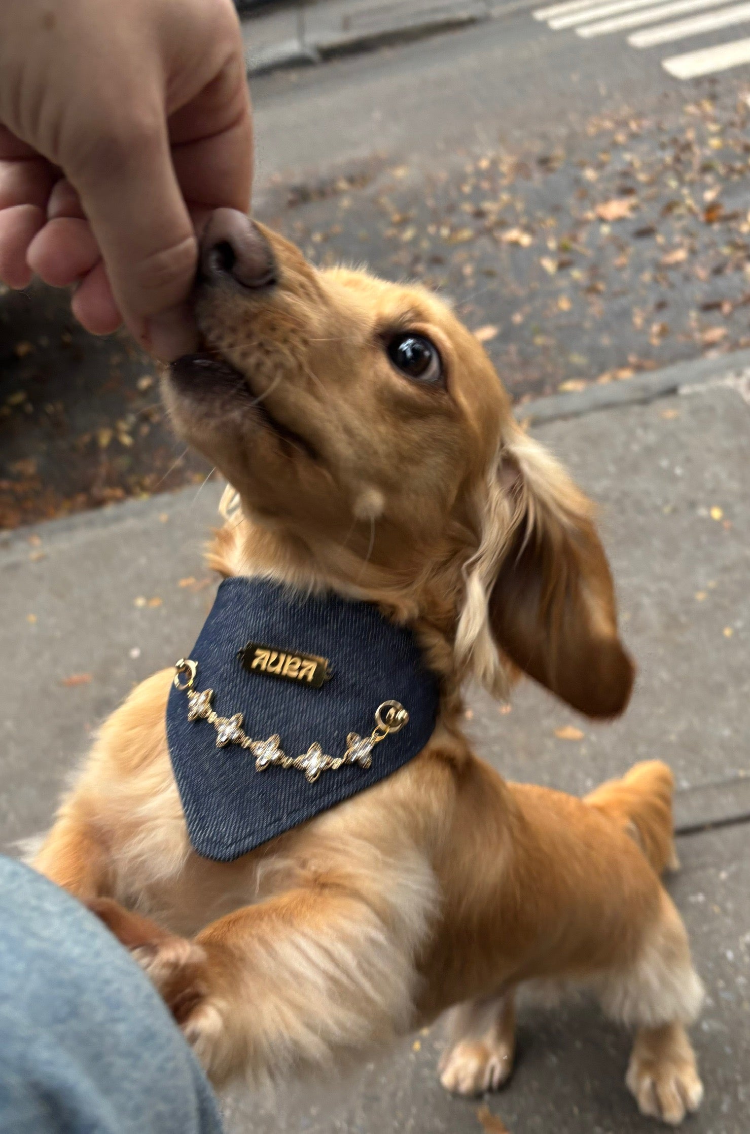 Pack Bandana en jeans + Collier en biothane - Aura x Oscar & Co