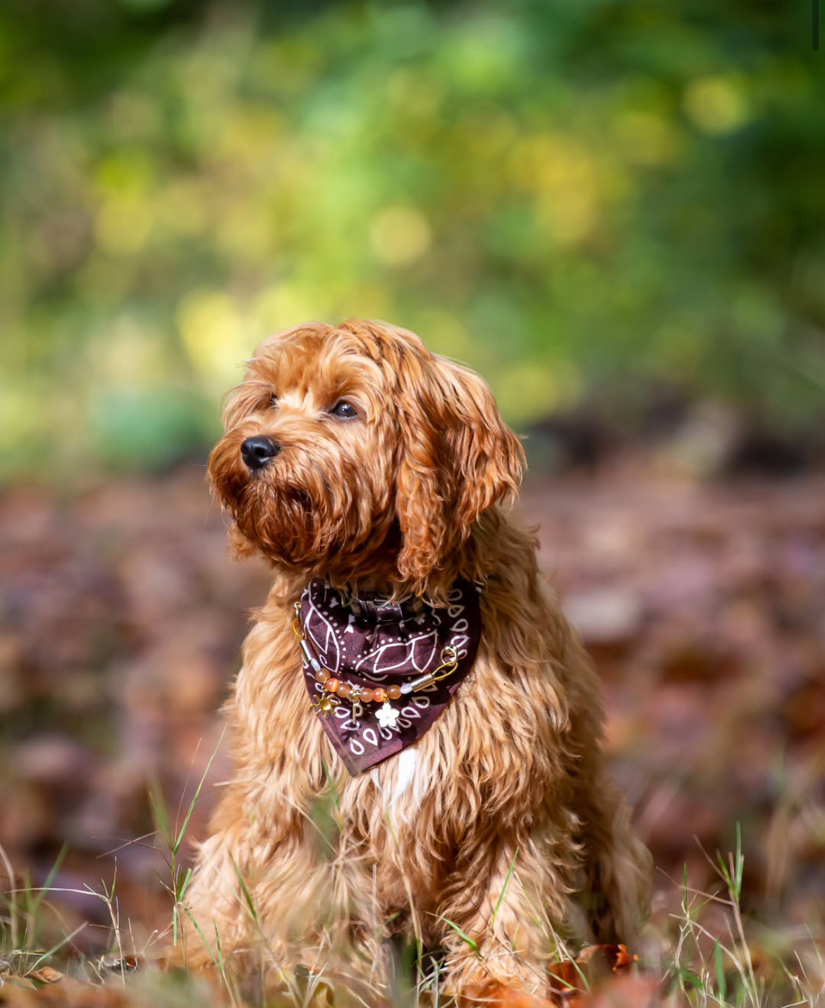 Véronica et Roméo ont eu un crush pour notre nouveau bandana d'automne. Ce qu'ils préfèrent ? Ses couleurs élégantes et son adorable charm champignon !