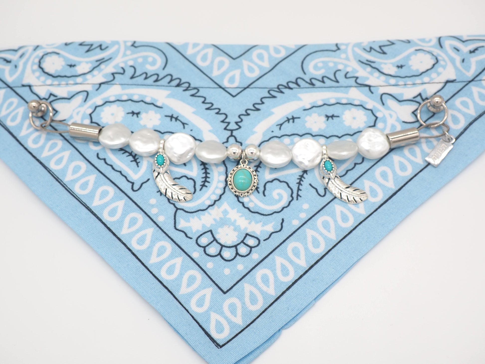 - Light blue paisley bandana