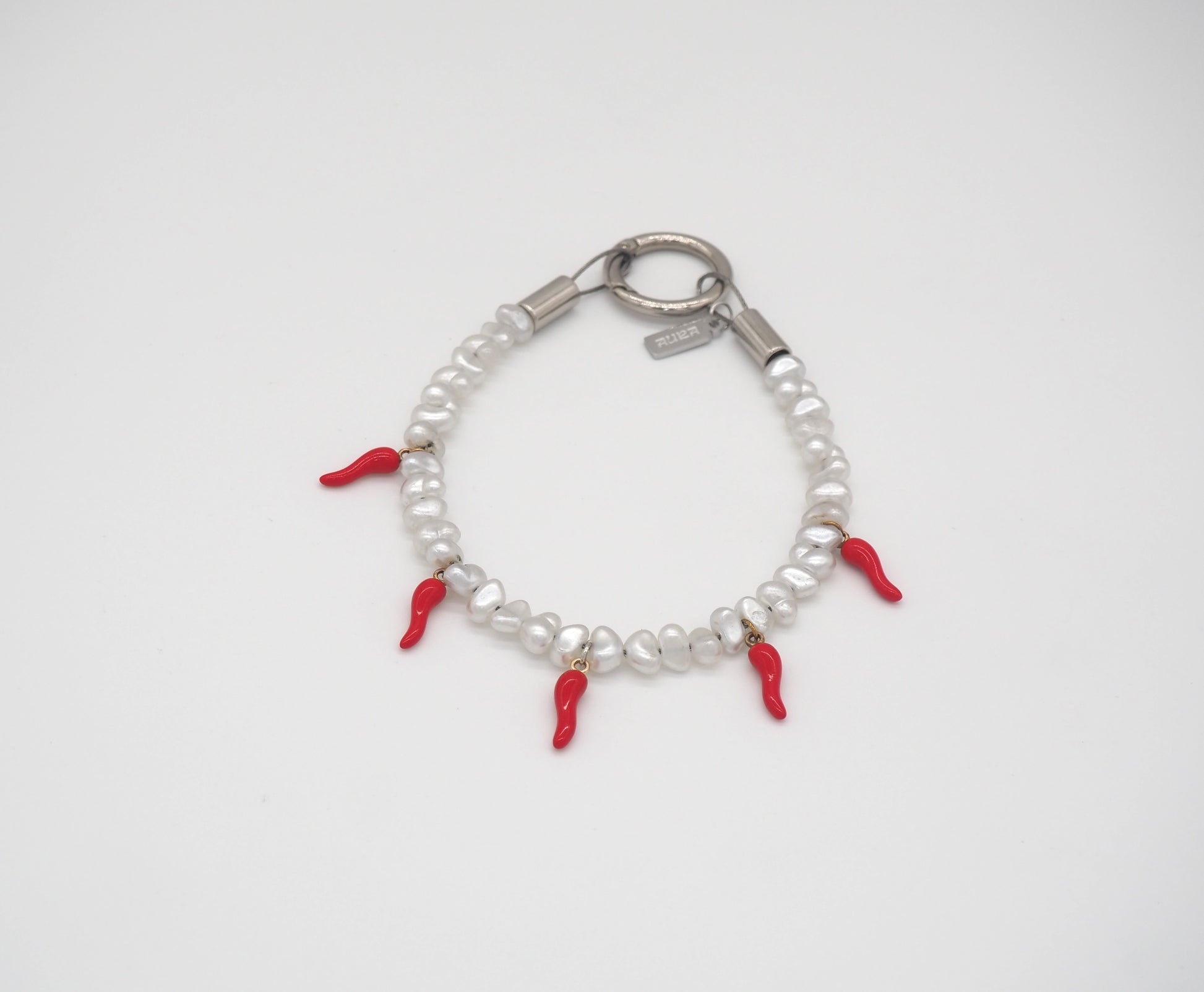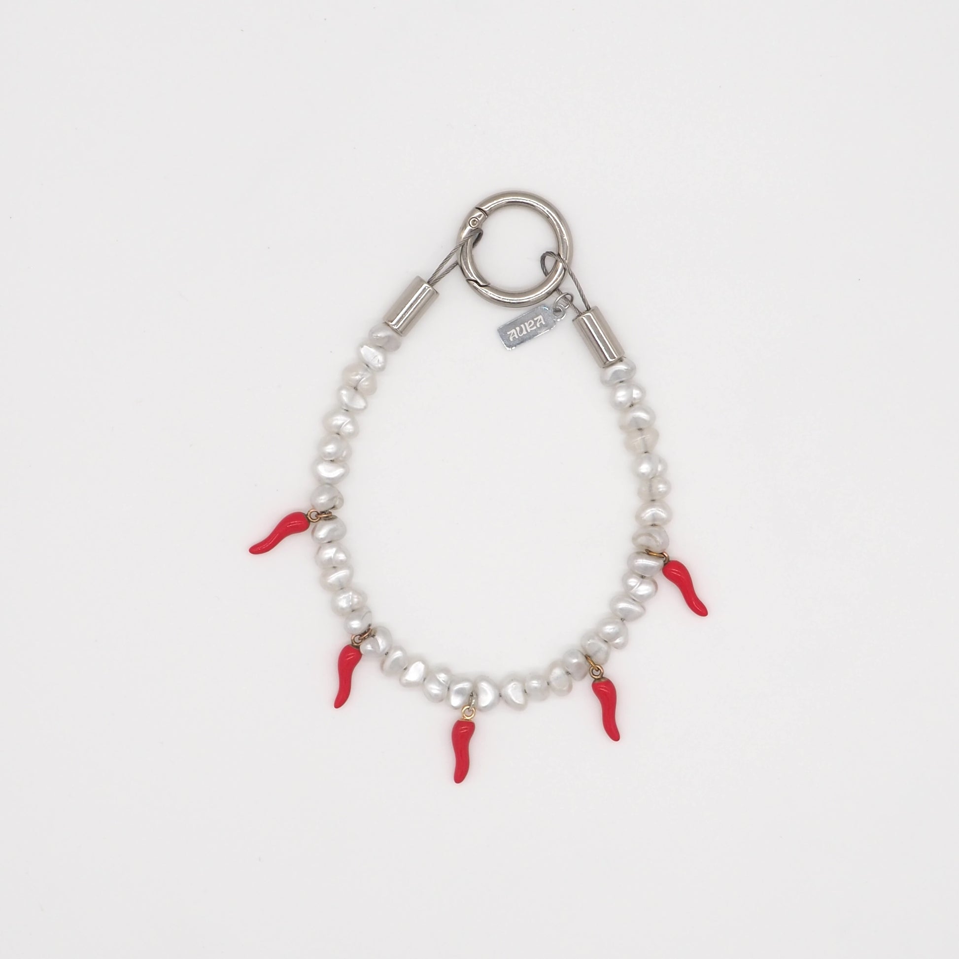 ピカンテカラーは、温厚な性格と攻撃的な性格の両方を持つ犬にぴったりのアクセサリーです。左右非対称の白いビーズとチリペッパーのペンダントが特徴で、四足の友人である犬の魅力を際立たせる、独特の二面性を体現しています。