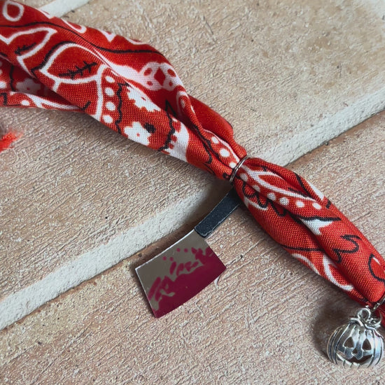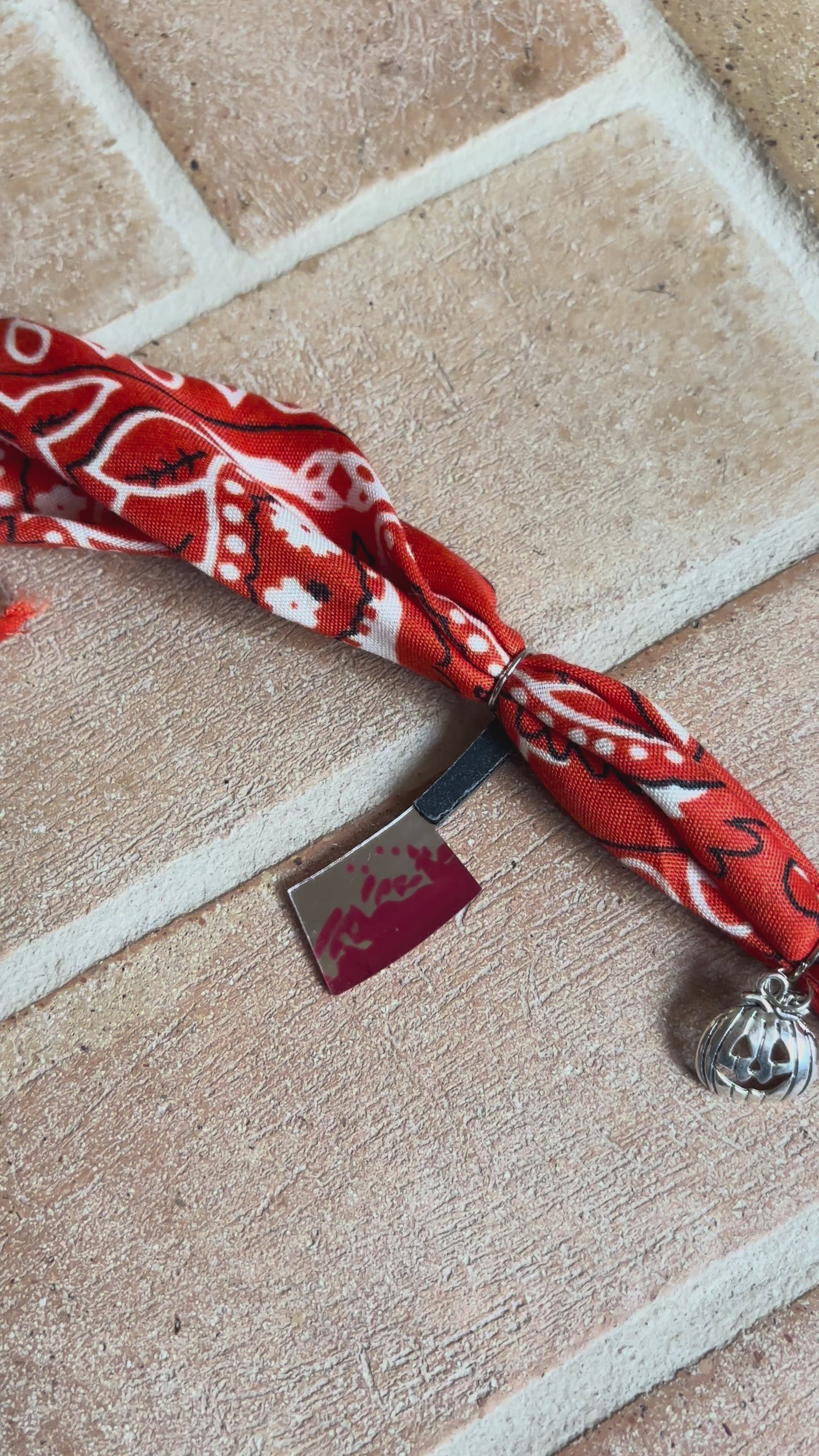 Le nouvel accessoire de votre chien qui va faire trembler tout le quartier ! Notre fameux modèle de bandana roulé et ses charms, se décline en coloris orange, pour une édition très limitée pour Halloween. Avec ces charms effrayants : une citrouille, une sorcière ou encore un couteau ensanglanté, votre chien aura le meilleur look pour Halloween.